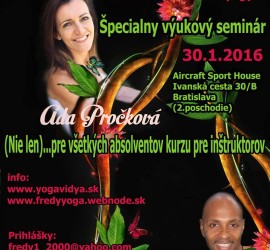 Milí naši inštruktori 🙂 Srdečne Vás pozývame na špeciálny výukový seminár, ktorý sa bude konať dňa 30.1.2016. Tento deň bude venovaný nielen absolventom kurzu pre inštruktorov, ale aj pre všetkých ostatných záujemcov, ktorí si chcú prehĺbiť svoje poznatky a základné znalosti o yoge. Budeme sa venovať praktickým cvičeniam  Pranayáma, Bandha, Suryanamaskar, Rishikeshska zostava, základné pozície […]