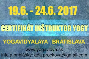 Ak máte záujem prehĺbiť si svoje poznatky a ponoriť sa hlbšie do otázok yogovej praxe a tradičnej yogovej filozofie, ponúkame Vám základný intenzívny kurz, ktorý sa uskutoční v dňoch 19. – 24.6.2017 v priestoroch yogového centra Yoga Vidyalaya v Bratislave. Kurz je určený pre všetkých, ktorí majú vážny záujem o poznanie yogy, nemusia mať zatiaľ ambície stať sa inštruktormi. Možno práve tento kurz Vás nasmeruje na túto cestu 🙂