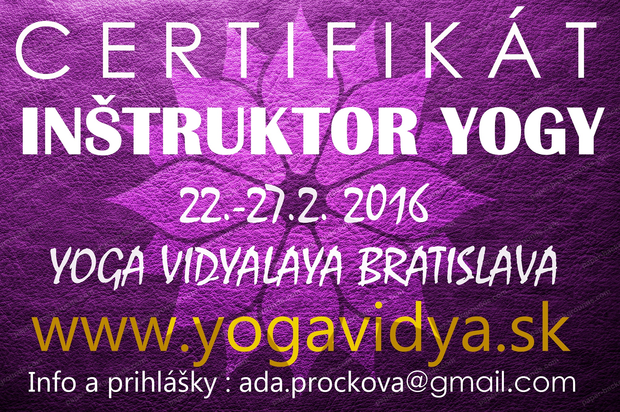 Ak máte záujem prehĺbiť si svoje doterajšie poznatky a ponoriť sa hlbšie do otázok yogovej praxe a tradičnej yogovej filozofie, ponúkame Vám základný intenzívny kurz, ktorý sa uskutoční v dňoch 22. – 27.2.2016 v priestoroch yogového centra Yoga Vidyalaya v Bratislave. Kurz je určený pre všetkých, ktorí majú vážny záujem o poznanie yogy, nemusia mať zatiaľ ambície stať sa inštruktormi. Možno práve tento kurz Vás nasmeruje na túto cestu.